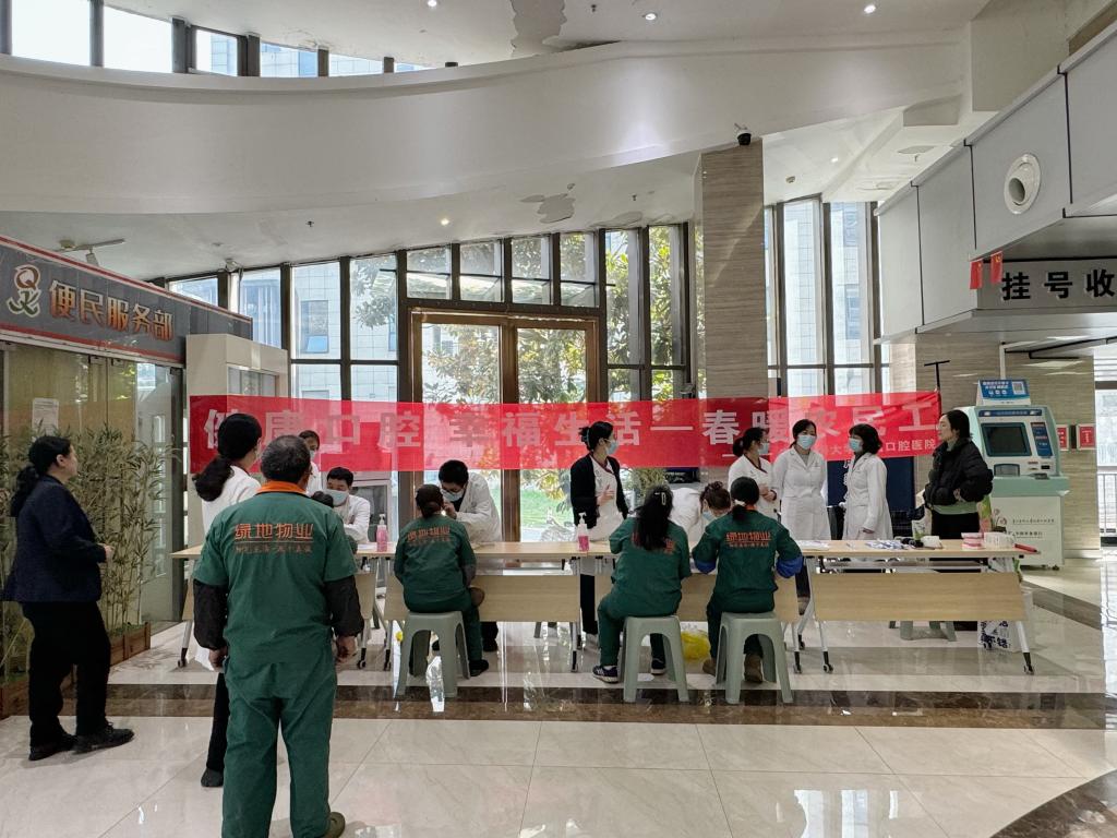 为响应FDI世界牙科联盟的号召,深入贯彻落实《健康中国行动(2019-2030年)》《中华人民共和国科学技术普及法》和《贵州省2026年“春暖农民工”服务行动工作方案》各项部署要求,切实提升群众口腔健康素养,在“3·20”世界口腔健康日来临之际(3月10日),我院联合贵州省健康管理师协会、贵州绿地物业管理有限责任公司在门诊大厅开展“健康口腔 幸福生活——春暖农民工” 为主题的口腔义诊活动,以专业医疗服务与暖心健康关怀,为农民工群体及广大群众筑牢口腔健康屏障。
